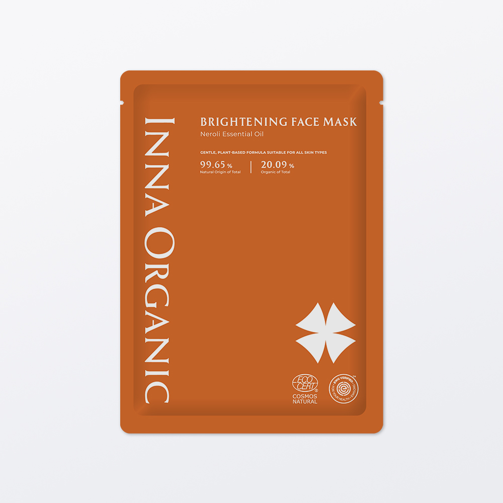 The Neroli Brightening mask made with organic cotton offers a gentle and effective way to absorb and deliver intense brightening with hydrating and AHAs ingredients.